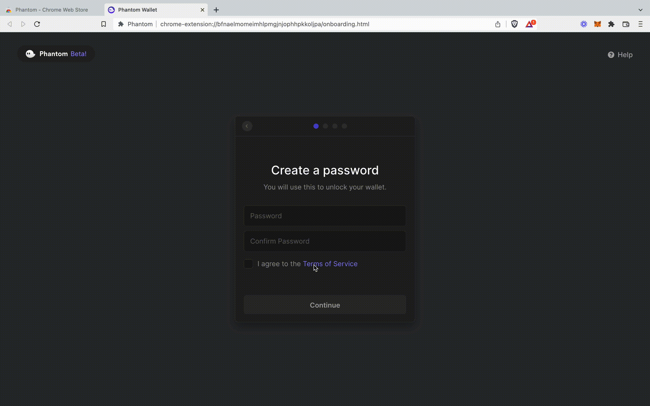 Your secret recovery phrase is the key to all the assets in your Phantom wallet. Anyone who gains access to those words can control your assets. During the wallet setup process, you should have written the phrase on a piece of paper. It’s important to never lose your seed phrase. Phantom has integration with 1Password, a popular password manager which allows you to safely store your wallet credentials. That way, you won’t have to worry about losing access to your wallet.