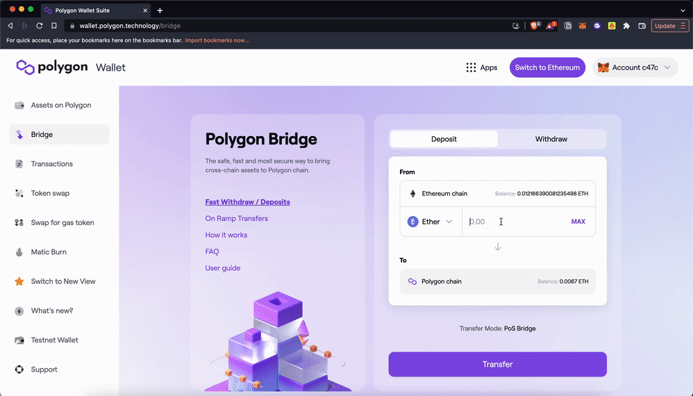 Learn how to send, receive, and bridge your Polygon assets on the Polygon Wallet Suite, a non-custodial wallet for managing your assets.